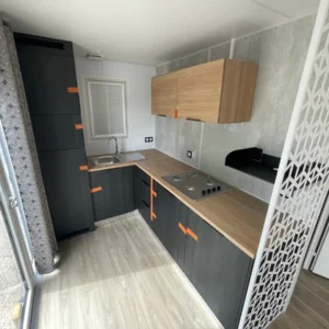 Mobile Home Conteneur T2 : une maison compacte, moderne et personnalisable, idéale pour tous les besoins. Facile à transporter, efficace et durable.