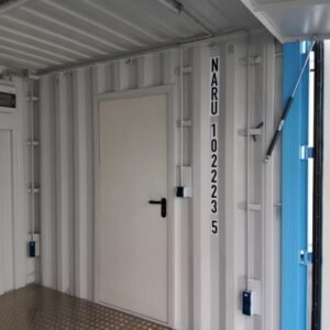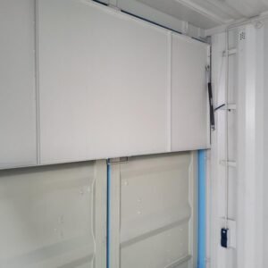 Dimensions extérieures : 2 991 mm x 2 438 mm x 2 591 mm Dimensions intérieures : 2831 mm x 2352 mm x 2390 mm Dimensions de la porte : 2338 mm x 2280 mm Volume : 15,9 m³ Palettes européennes : 5