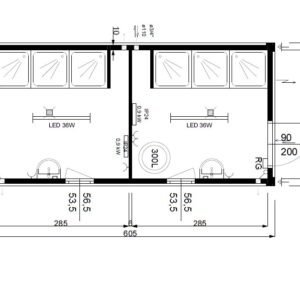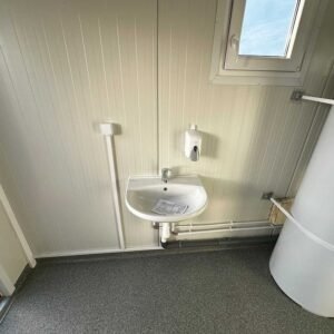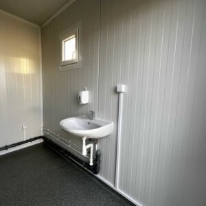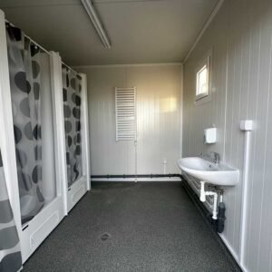 Conteneur sanitaire 3×6 – 6 douches, 2 lavabos, chauffe-eau 300 litres