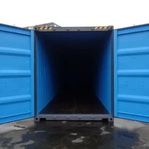 Conteneur standard 40 pieds d'occasion, parfait pour le stockage sur chantiers, entrepôts ou environnements agricoles. Structure en acier soudé (3 mm) Plancher en bois traité 25 mm Volume utile : 31 m³ 4 aérations, doubles portes Manutention par chariot élévateur ou grue