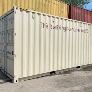 Conteneur maritime High Cube 20 pieds, avec design robuste et hauteur supplémentaire pour stockage volumineux. Parfait pour projets modulaires ou stockage grande capacité.