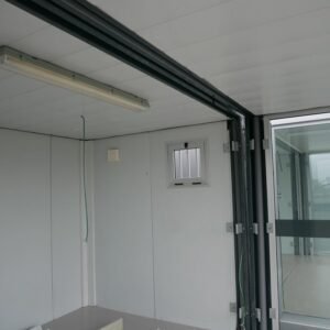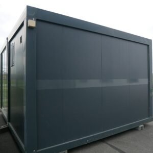 Photos contractuelles (Module vendu en parfait état comme présenté sur les photos) Les caractéristiques énumérées ci-dessous sont les caractéristiques standard de ce module. Vous pouvez passer commande directement si ces caractéristiques vous conviennent. Pour tous vos besoins de personnalisation, contactez-nous Spécifications : Dimensions : LxPxH : 4,70 x 3,84 x 2,64 mètres – Panneaux muraux avec isolation en laine de roche 40 mm – 2 châssis de 3,84 x 2,35 m en acier galvanisé gris clair sur cadre et avec hauteur sous plafond de 2,30 m – Toit en tôle galvanisée, isolation laine de verre 100 mm – Revêtement de plafond en bac acier blanc – Nouveau plancher en aggloméré CTBH 22 mm – Nouveau revêtement de sol plastique Menuiserie : – 1 porte vitrée simple 0,90 m – 3 baies vitrées – 2 pignons et 1 côté long – 2 châssis hauts avec barreaux et OB de 0,50 x 0,40 m avec double vitrage Équipement : – Tableau électrique général monophasé étanche – 3 fluorescentes doubles étanches – Projecteur LED – 3 prises de courant – Convecteurs électriques : 2 de 1000 W