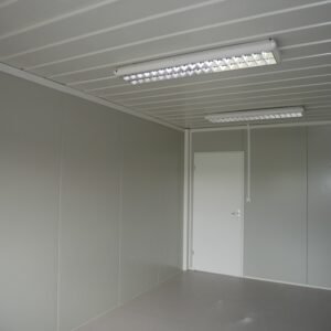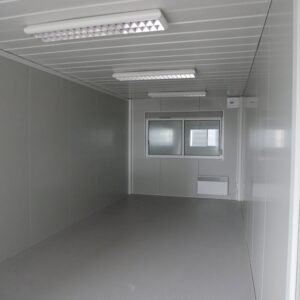 Photos contractuelles (Module vendu en parfait état comme présenté sur les photos) Les caractéristiques énumérées ci-dessous sont les caractéristiques standard de ce module. Vous pouvez passer commande directement si ces caractéristiques vous conviennent. Pour tous vos besoins de personnalisation, contactez-nous Spécifications : Dimensions (LxPxH) : 8,24 m x 6,00 m x 3,00 m – 2 châssis de 8,24 m x 3 m x 3 m en acier galvanisé laqué blanc et une hauteur sous plafond de 2,51 m – Panneaux muraux avec isolation en mousse polyuréthane de 80 mm – Toit en tôle galvanisée – Revêtement de plafond en bac acier microperforé – Isolation en laine de verre de 100 mm – Nouveau plancher en aggloméré CTBH de 22 mm – Nouveau revêtement de sol plastique Menuiserie : – 1 porte extérieure vitrée de 0,90 m – 3 fenêtres de 2,00 x 1,20 m en double vitrage et volet roulant – 2 portes intérieures isoplane de 0,83 m Équipement : – Tableau électrique général monophasé – 8 fluorescentes à double grille – Prises de courant – Convecteurs électriques : 3 de 2000 W et 1 de 500 W
