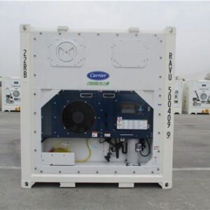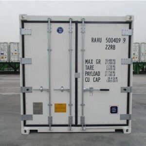 Conteneur d'expédition reefer 20′ / nouveau réfrigérateur Longueur : 6 mètres, hauteur extérieure : 2.591 et intérieure : 2.261 (m.) Machines Carrier ou Thermo King Dimensions extérieures (LxPxH) : 6058 x 2438 x 2591 mm. Nouveau conteneur/réfrigérateur réfrigéré 20 pieds, utilisé pour les applications liées au maintien des produits à température constante. Isolé pour maintenir au mieux la température assignée, les parois intérieures sont en acier inoxydable et le sol est en aluminium strié type T. Les marques de machines que nous proposons le plus couramment sont Carrier et Thermo King, bien que d'autres comme Star Cool ou Daikin puissent également être fournies. Il est conforme aux exigences de transport CSC et TIR et aux normes ISO dans sa construction. Applications les plus courantes : Transport maritime et intermodal de marchandises périssables, congélation ou stockage frigorifique de poisson, fruits, viande, conservation du raisin dans l'industrie vinicole, du cuir, produits pharmaceutiques, etc. La bonne façon d'utiliser cet équipement est de pré-refroidir l'unité et, une fois cette température atteinte, de placer les produits dans le conteneur.